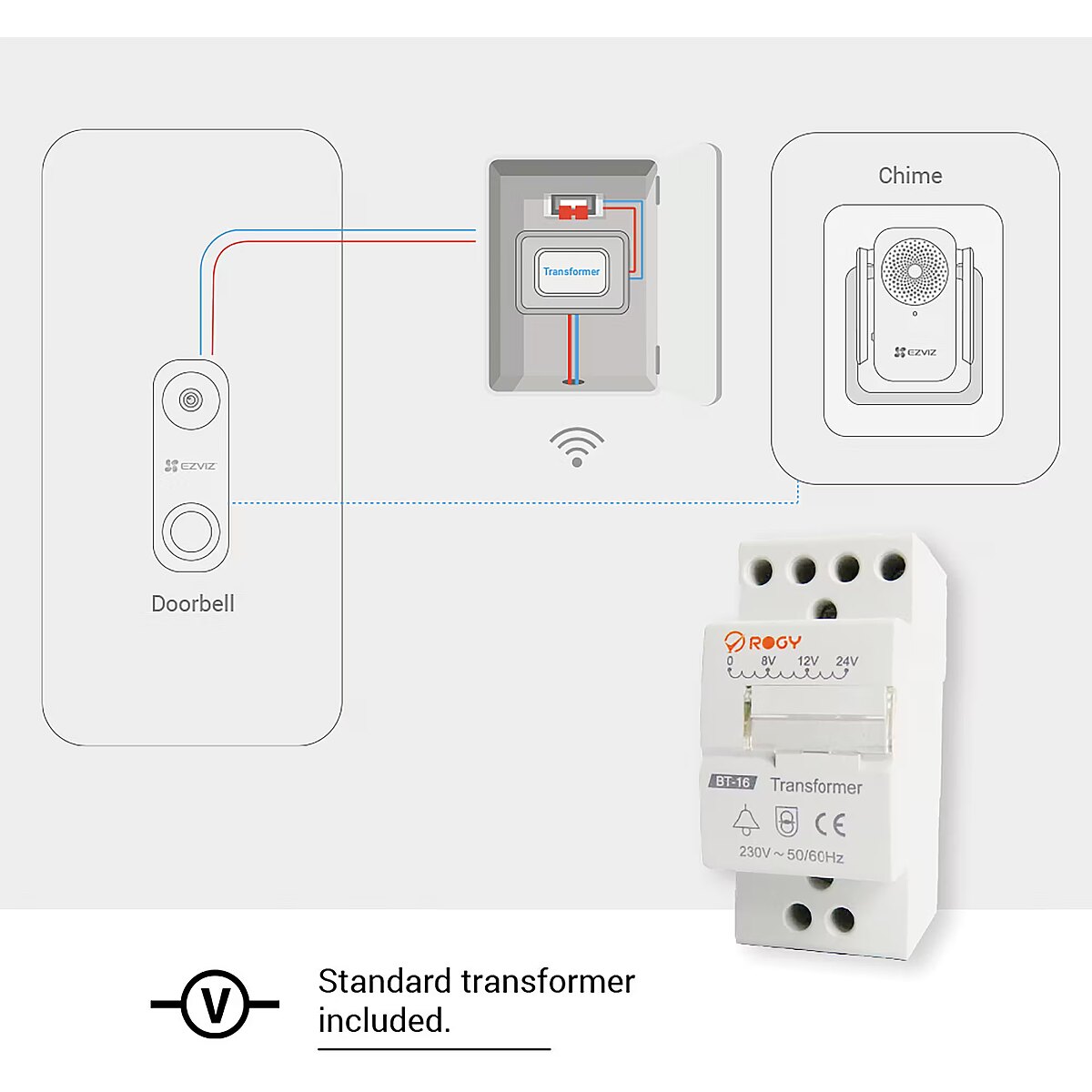 MediumDescription EN - Complete security solution for your doorstep protection. The DB1C kit comes with a Wi-Fi video doorbell, a chime, and a standard transformer in the package. Together they provide you with a full set of solution to improve your home security.
