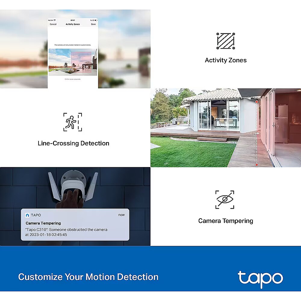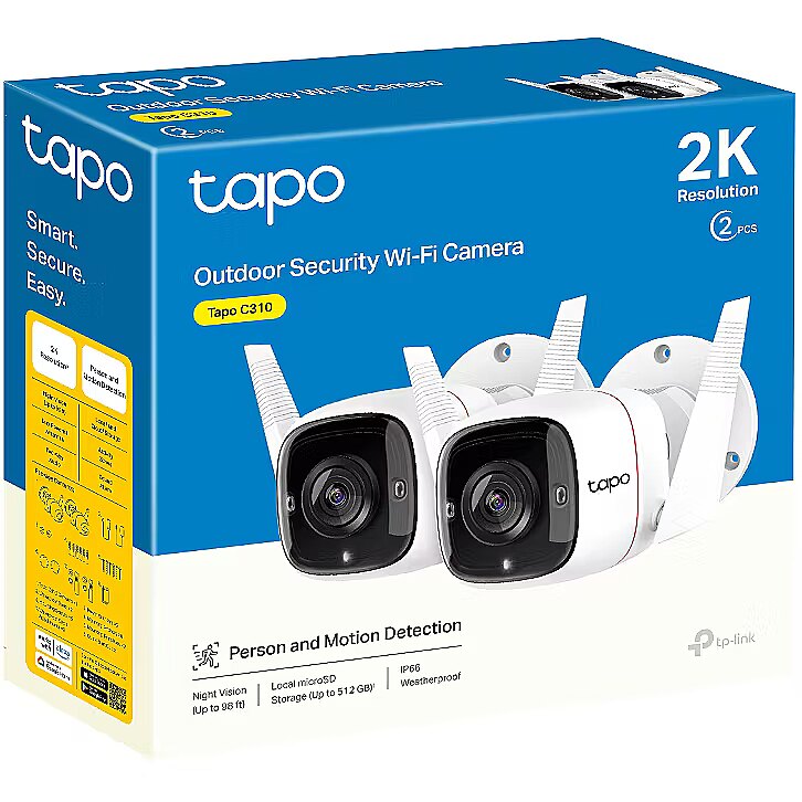 LongDesc - Smart. Secure. Easy.Protecting You Day and NightOutdoor Security Wi-Fi Camera2K Resolution, See Every DetailWith the resolution of 2304 × 1296 px , Tapo C310 enhances your security by capturing more details compared with traditional 1080p(1920 × 1080 px).Smart Person DetectionNo longer disturbed by any unnecessary events and only receive notifications when a person is detected. The accuracy can even reach up to 98% based on advanced AI algorithms.Customize Your Motion DetectionSet your own activity zones or boundaries to only let what matters alerts you.Sharp Night VisionProvides a visual distance of up to 98 ft (30 m) even in total darkness to always keep you safe.
