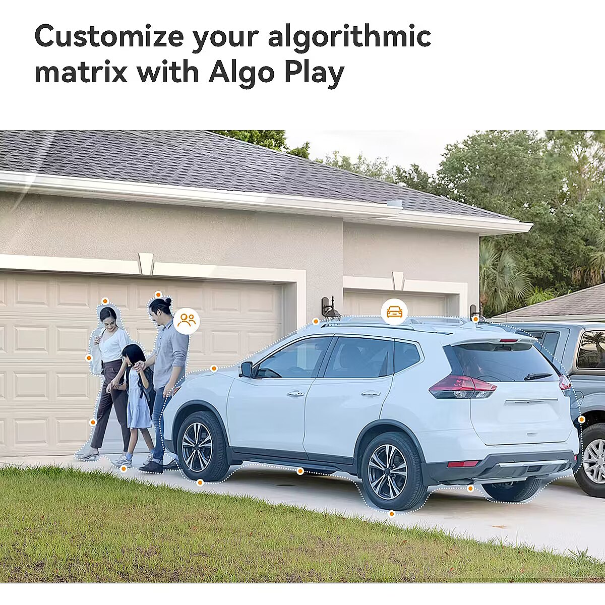 Loo omaenda nutialgoritmide süsteem Algo Play abil: vali ja laadi alla tuvastusfunktsioone, nagu inimese või sõiduki tuvastus, liini ületamine, ala sissetung, kaamera vaate blokeerimine, parkimiskeeldude tuvastus, liiklusstatistika ja palju muud. Funktsioonid on pidevalt uuendatavad, et pakkuda sulle järjest täpsemat ja nutikamat kogemust. Ole ühenduses koduga kõikjal