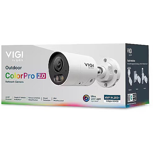 Description - VIGI 4MP Outdoor ColourPro 2.0 Bullet Network Camera AI-ISP Powered Ultra Low-Light Colour Night Vision 4MP Super-High Definition People & Vehicle Analytics Human & Vehicle Classification Smart Detection Two-Way Audio Smart Video Enhancement Technology Flexible Alarm In/Out Devices Integration IP67 Weatherproof H.265+ Compression Technology