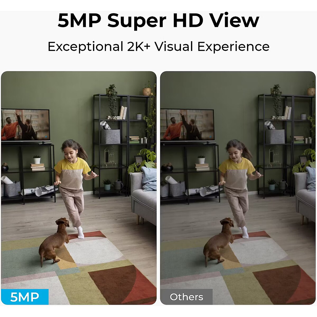 With a 3K 5MP lens and 2880 × 1616 resolution, enjoy 55% more details than 3MP cameras. Coupled with an F1.6 aperture, the E331 draws in 2× more light than a standard F2.0 lens, producing sharper and brighter images even in dimly lit settings. 360° Whole-Room Coverage
