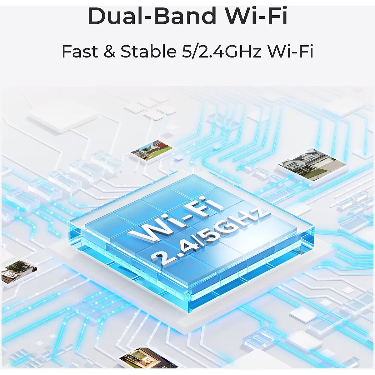 Kahe sagedusribaga WiFi 6 tehnoloogiaga seab see uue standardi juhtmevabas ühenduses, võimaldades sujuvat 4K voogesitust, täiustatud stabiilsust ja vähendatud latentsust. Toetades nii 2,4 GHz kui ka 5 GHz WiFi sagedusi, pakub see kaamera tugevaid signaale usaldusväärse võrguühenduse tagamiseks kõikjal majas. Näe, kuule ja suhtle