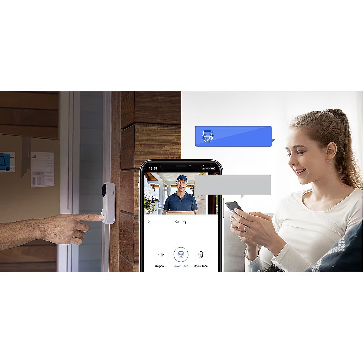 Respond to friends or deliveries with only a simple tap. If you live alone and prefer to stay unidentified to a stranger, just use the voice changer for extra peace-of-mind. Easy to use but hard to tamper with