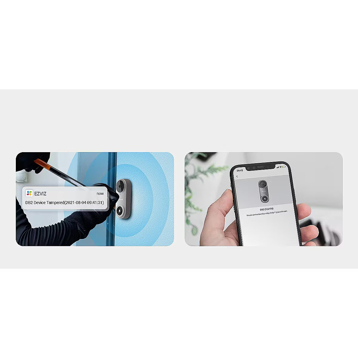 Kui uksekell eemaldatakse jõuga, kõlab terav häire ja saad mobiiliteavituse. Lisaks keelab DB2 Pro varguse korral volitamata kasutuse tänu konto sidumise piirangule.