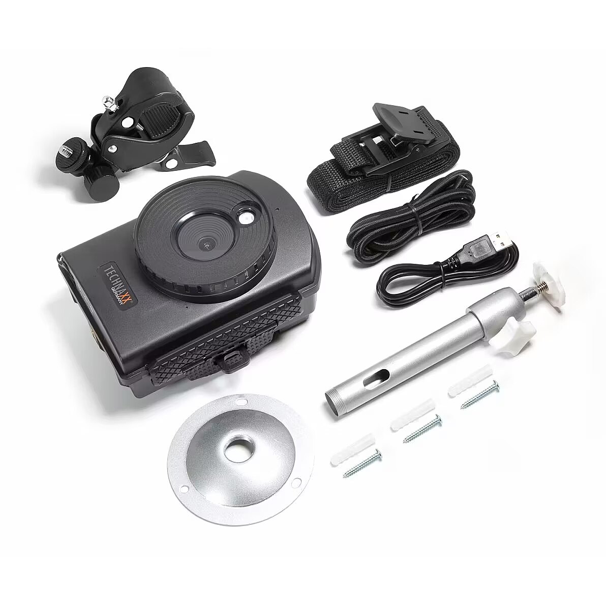 Accessories included - Full HD Time Lapse Camera TX-164 MicroUSB cable Mounting belt Mounting rope Wall bracket Mounting bracket 3x screws & 3x dowels 12x AA batteries User Manual