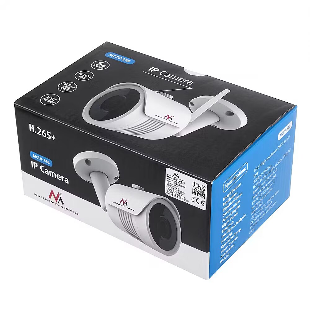 Description - Maclean 5MPx outdoor IPC WiFi Network Camera, Tube, CMOS 1/2.5", H.264/H.264+/H.265/H.265+/JPEG/AVI, Onvif, MCTV-516 Maclean network WiFi IP / IPC cameras are high quality video surveillance equipment that are suitable for indoor and outdoor installation and 24/7 surveillance. The camera is ideal for home monitoring, offices, warehouses as well as construction sites and allotments. The camera works with the Bitvision application (available in the Play shop and App store) - free application for iOS and Android - live viewing of any number of cameras from any location - preview of recorded footage - local recording of video and images on a smartphone - sharing the view with other users Note: The camera does not have PoE. It can be powered via the mains cable by using an external 12V PoE adapter. There is no adapter or power supply included.