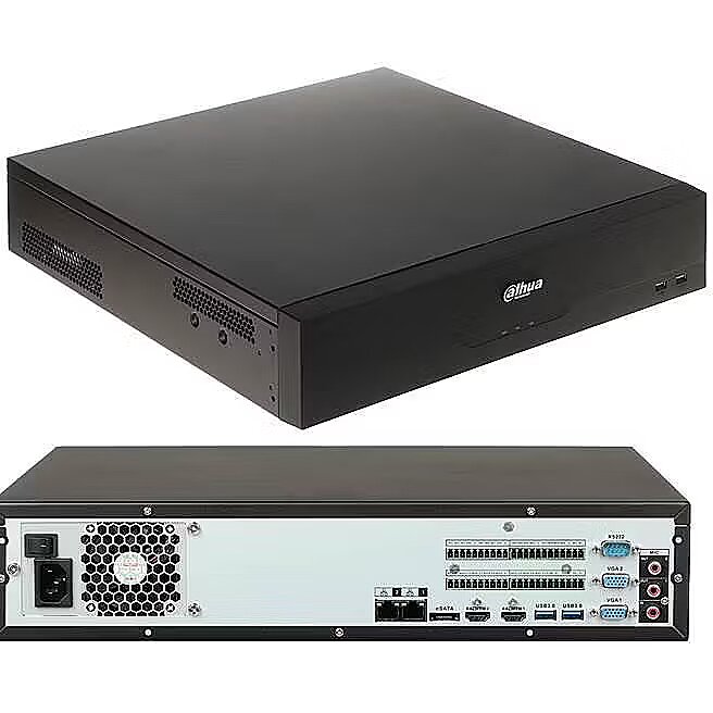 Description - 64 IP channel max, up to 32MP resolution Max: 384Mbps recording bandwidth, Smart H.265+; H.265; Smart H.264+; H.264; MJPEG 2x VGA/HDMI up to 4K output, decoding up to 2-channel 32 MP @ 20 fps 8 SATA III ports, up to 16 TB for a single HDD, RAID 0/1/5/6/10 No front panel control, 16/8 alarm I/O, 2 USB, Audio I/O: 1/2, eSATA, RS-232, RS-485 Rack/desktop mounted chassis AI by recorder: 2-channel face detection and recognition, 4-channel perimeter protection, and 8-channel SMD Plus. AI by camera: Face detection and recognition, perimeter protection, SMD Plus, metadata, ANPR, stereo analysis, heat map, and people counting. Free IP monitoring software available Other brands IP cameras supported
