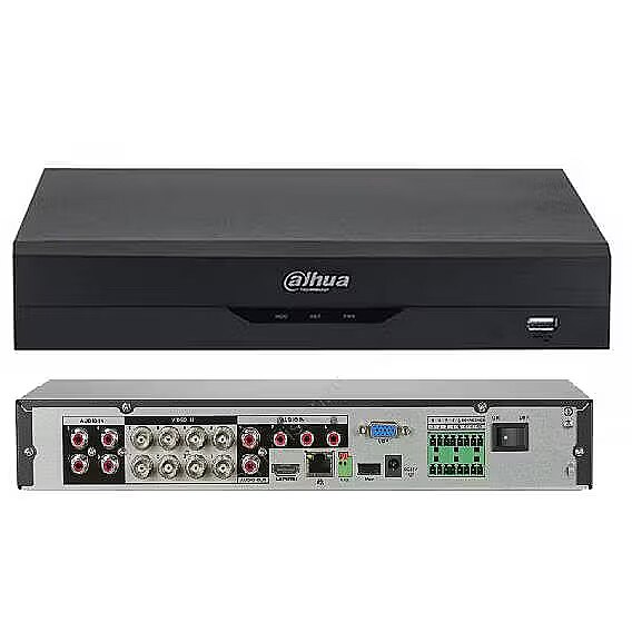 Description - 8 Channel Penta-brid 5M-N/1080p Mini 1U 1HDD WizSense Digital Video Recorder HDCVI Camera Input: 5MP, 4MP, 1080p@ 25/30 fps, 720p@ 50/60 fps, 720p@ 25/30 fps AHD Camera Input: 5MP, 4MP, 1080p@ 25/30 fps, 720p@ 25/30 fps TVI Camera Input: 5MP, 4MP, 1080p@ 25/30 fps, 720p@ 25/30 fps CVBS Camera Input: PAL/NTSC IP Camera Input: 8+4 channels, each channel up to 6MP Recording: All channel 5M-N (1 fps–10 fps); 4M-N/1080p (1 fps–15 fps); 1080N/720p/960H/D1/CIF (1 fps–25/30 fps) Max 6 channels IP camera inputs, each channel up to 6MP; Max 32 Mbps incoming bandwidth AI Coding/H.265+/H.265/H.264+/H.264 video compression Audio In/Out: 8/1, RCA, G.711A, G.711U, PCM audio compression 1x SATA interface up to 10 TB storage VGA/HDMI up to Full HD output RJ-45, 2x USB ports, RS485 No front panel control, 8/3 Alarm I/O Compact 1U case, mouse included ONVIF 16.12, CGI Conformant, Smart Search, Coax audio support Third-party IP camera support: Dahua, Arecont Vision, AXIS, Bosch, Brickcom, Canon, CP Plus, Dynacolor, Honeywell, Panasonic, Pelco, Samsung, Sanyo, Sony, Videotec, Vivotek, and more Human/Vehicle secondary recognition for tripwire and intrusion, Search by target classification (Human, Vehicle) Up to 1 channel video stream ( analog channel ) Perimeter Protection Up to 4 channels video stream ( analog channel ) SMD Plus Up to 1 channel video stream (analog channel ) human face recognition IoT & POS functionalities Free IP monitoring software available
