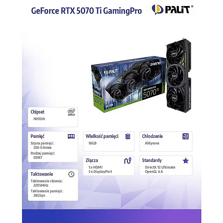 Palit GeForce RTX 5070 Ti, 16GB GDDR7, GamingPro (DLSS 4)
