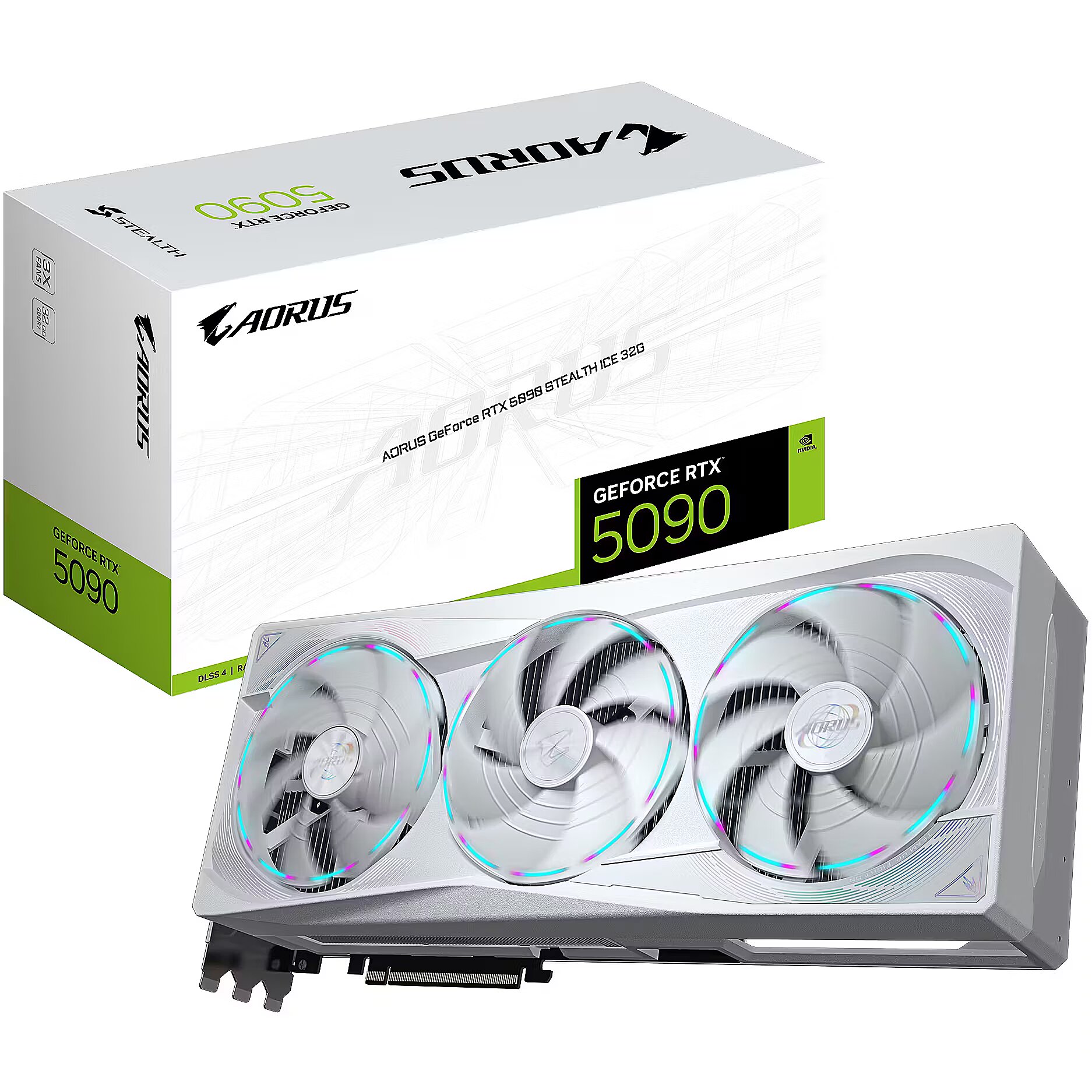 ShortSummaryDescription - GIGABYTE AORUS GeForce RTX 5090 STEALTH ICE 32G Graphics Card - 32GB GDDR7, 512bit, PCI-E 5.0, 2655MHz Core Clock, 3 x DP 2.1a, 1 x HDMI 2.1b, NVIDIA DLSS 4, GV-N5090AORUSST ICE-32GD, GeForce RTX 5090, 32 GB, GDDR7, 512 bit, 7680 x 4320 pixels, PCI Express 5.0