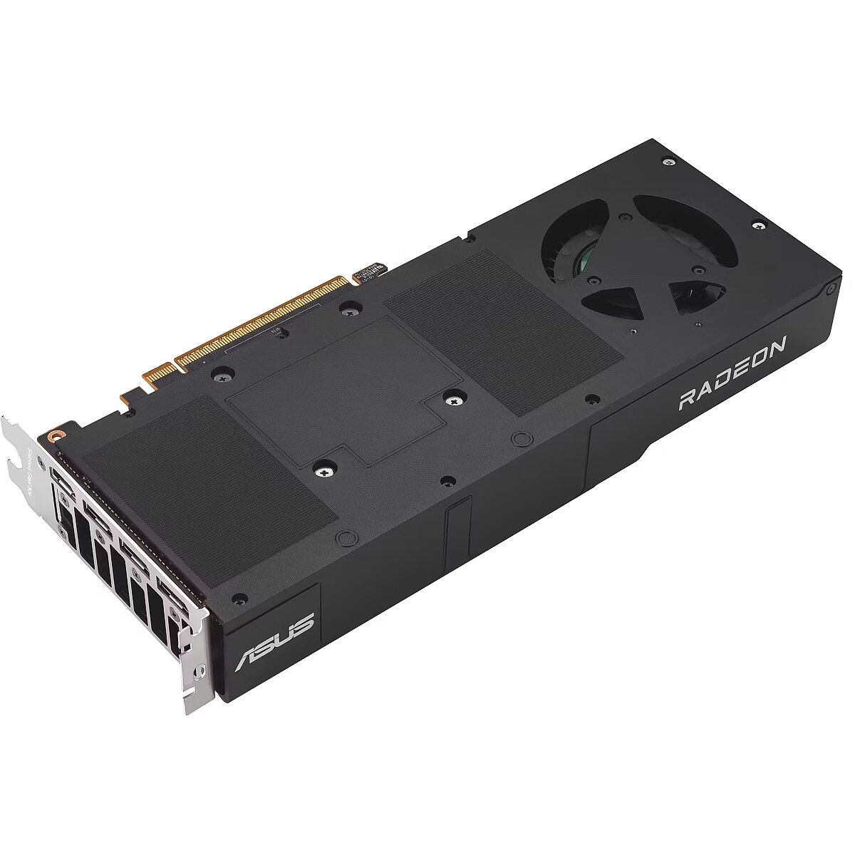 LongDesc - ASUS Turbo Radeon™ AI Pro R9700TURBOCHARGED FOR AIThe ASUS Turbo Radeon™ AI Pro R9700 32GB is built for compact workstations tackling AI and professional workloads. Its blower-style cooler, die-cast shroud, and reinforced backplate ensure efficient heat dissipation and long-term reliability—even in the tightest spaces.CoolingDiecast Shroud and BackplateEngineered to boost heat dissipation and strengthen the card's structure. Its special wave design maximizes the thermal surface, reducing memory temps by up to 16%.Dual Ball Fan BearingsFan bearings come in different types, each with its own advantages. Dual ball bearings provide superior durability and can last up to twice as long as sleeve-bearing designs.