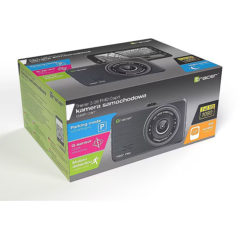 Description - REJESTRATOR SAMOCHODOWY TRACER 3.0S FHD CAPRI Rejestrator samochodowy TRACER 3.0S FHD CAPRI to nie tylko doskonałe narzędzie dla kierowców, którzy chcą mieć pewność, że zawsze będą mieli zapisane nagranie swojej podróży samochodem, ale również dla tych, którzy chcą zabezpieczyć swój pojazd w czasie postoju. Kamera samochodowa Filmy w jakości Full HD 1080p Tryb parkingowy, czujnik ruchu, g-sensor Wbudowany akumulator 200 mAh Nagrywanie w pętli Szeroki kąt nagrywania 150 stopni (widoczne oba pasy drogi) Nagrywanie dźwięku Tryb parkingowy i czujnik ruchu
