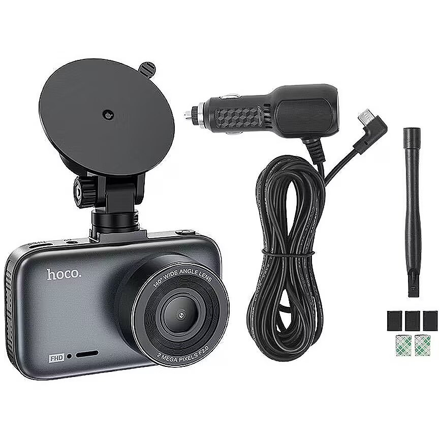 description_en - Hoco Driving DV5 car camera with a GC2053 sensor with a resolution of 2 million pixels, which records video in 1080P resolution at 30 frames per second, which allows you to obtain smooth and bright recordings. The built-in 3-inch IPS HD display allows you to constantly monitor the situation around the vehicle, and a wide viewing angle of 140 degrees provides a wide field of view.
