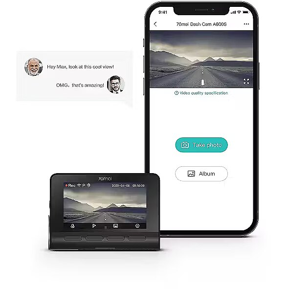 70mai A800S +Rear Cam RC06, 2160p(4K) Ultra HD, WDR, G-Sensor, App Control