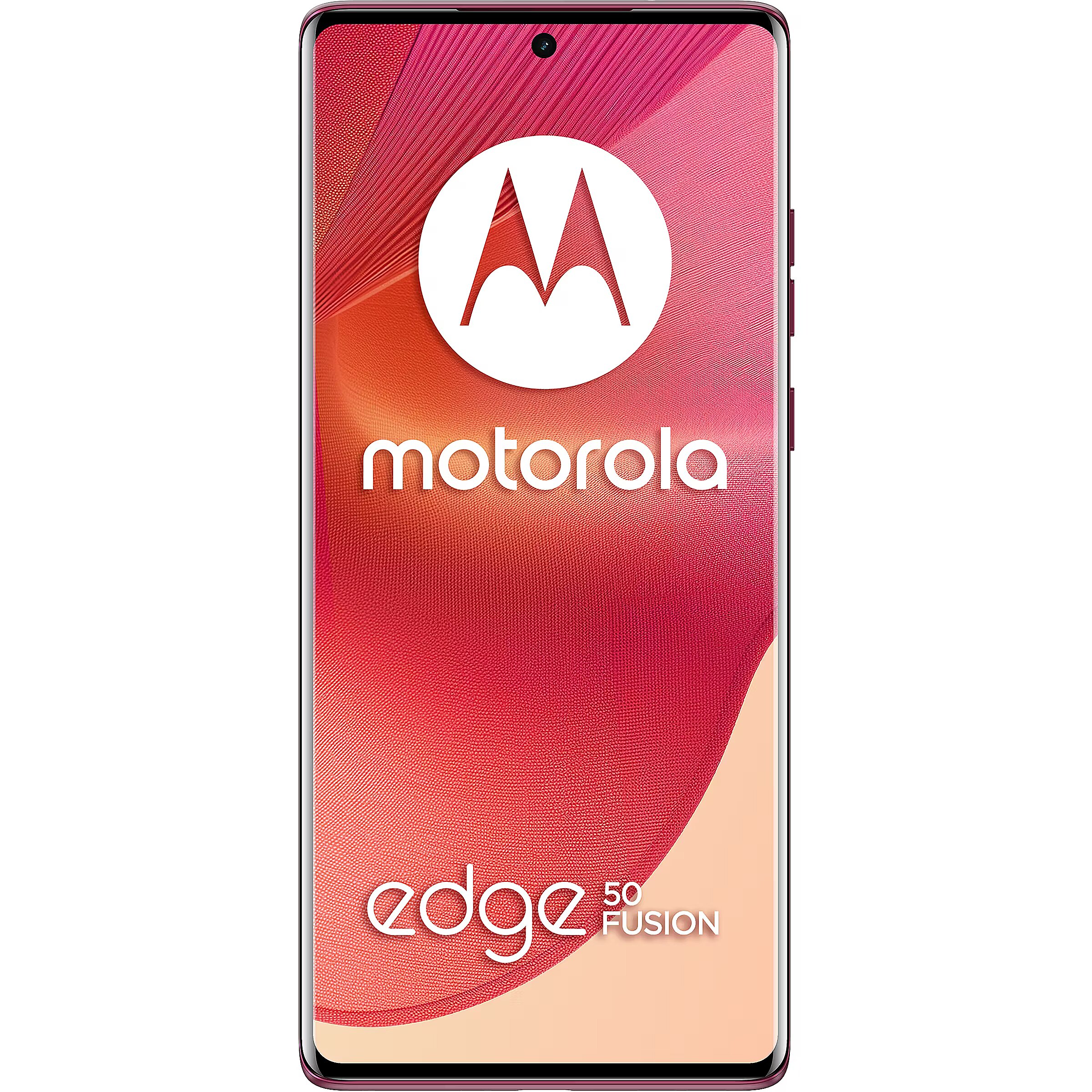 LongSummaryDescription - Motorola edge 50 Fusion. Display diagonal: 17 cm (6.7"), Display resolution: 1080 x 2400 pixels. Processor family: Qualcomm Snapdragon, Processor model: 7s Gen 2. RAM capacity: 8 GB, RAM type: LPDDR5, Internal storage capacity: 256 GB. Rear camera resolution (numeric): 50 MP, Rear camera type: Dual camera. SIM card capability: Dual SIM. Operating system installed: Android 14. Battery capacity: 5000 mAh. Product colour: Pink. Weight: 174.9 g