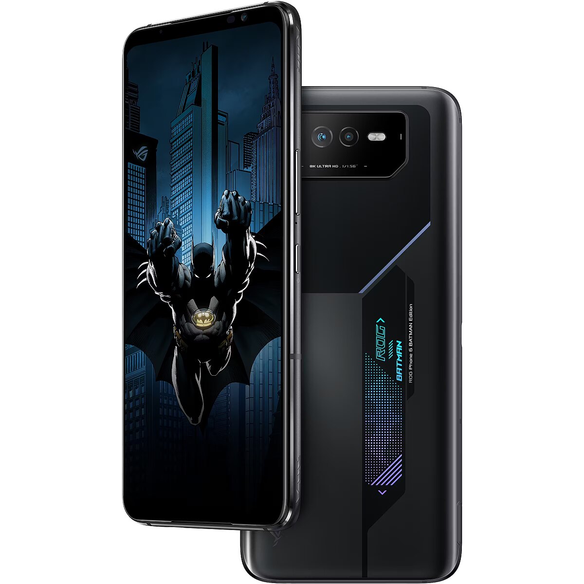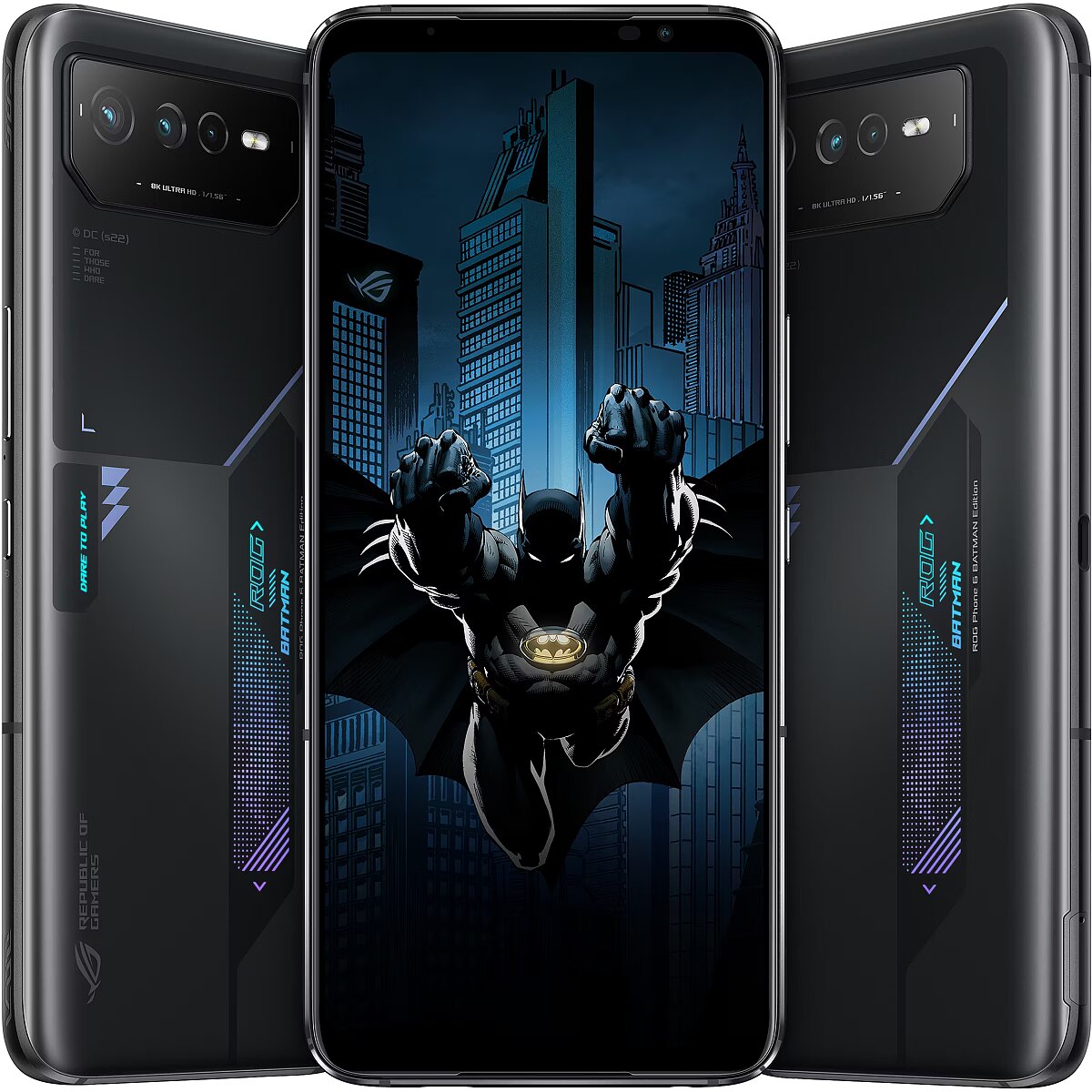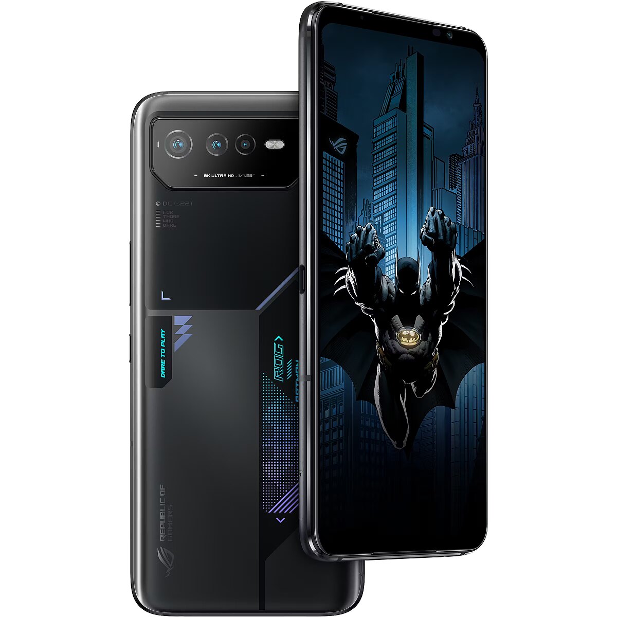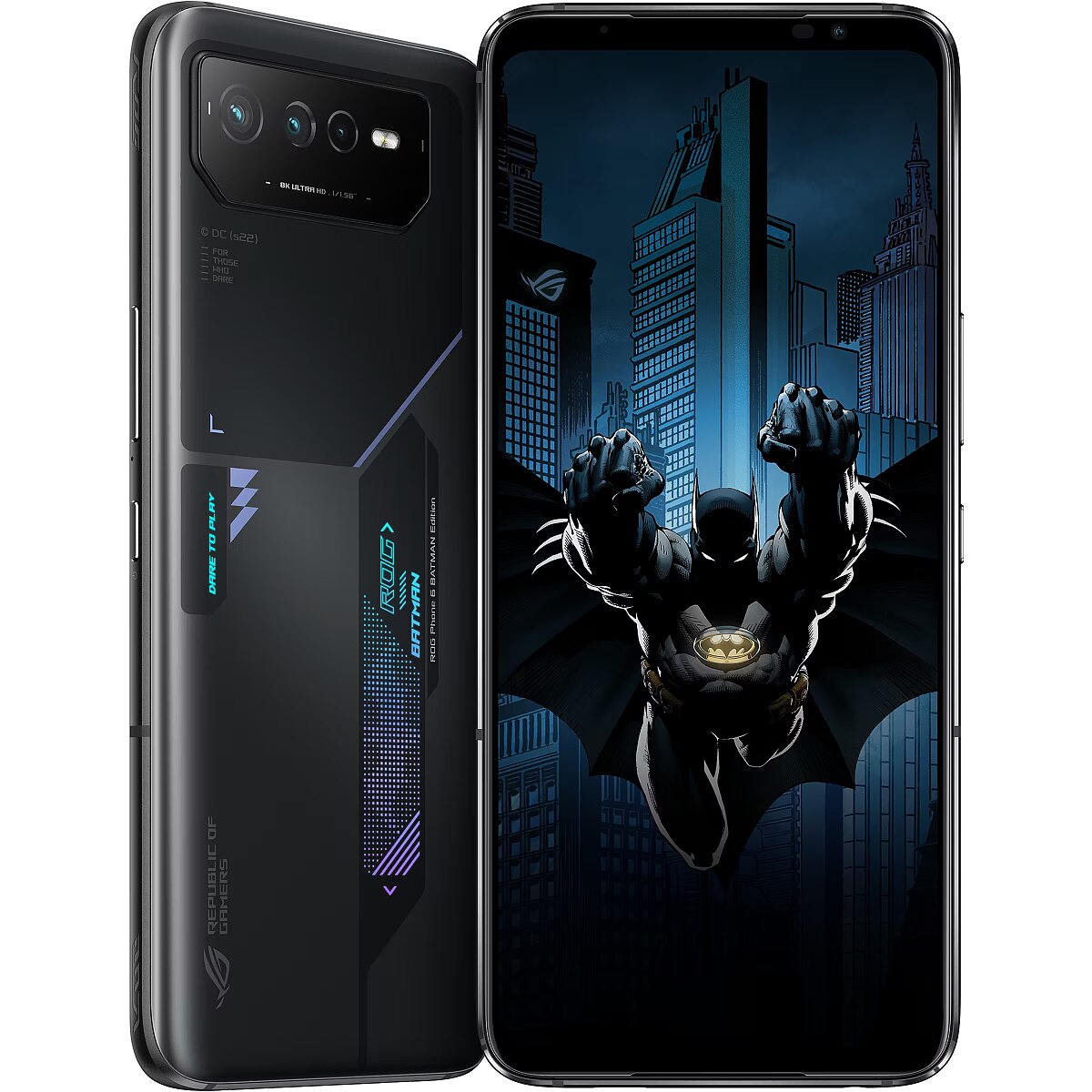 LongDesc - FOR THOSE WHO DAREIn collaboration with Warner Bros. Consumer Products, ROG proudly presents the ROG Phone 6 BATMAN Edition. The limited-edition themed phone and accessories pay tribute to the enigmatic tech-savvy crime fighter, the Batman.Iconic Phone DesignBased on the acclaimed ROG Phone 6, the Batman Edition incorporates classic design elements inspired by the Batman with the Aura RGB lighting illuminating the iconic pixel-rendered Batman logo.Batman Theme PackUpon pressing the power button of the ROG Phone 6 BATMAN Edition, you’ll see the Batman-themed startup animation, live wallpaper with charging animation and sound effects, Always-on Panel, and incoming call animation and famous yellow Batman logo fingerprint to unlock your phone.Collectible Case DesignThe case for the ROG Phone 6 BATMAN Edition is designed like an armaments box, hinting at the powerful gear within. On the top, the Batman and ROG logos are fused into a brand-new identity. Built from rugged EPP, it’s tough and shock-resistant, making it perfect for gamers and fans alike!Exclusive AccessoriesThe ROG Phone 6 BATMAN Edition features the Bat-Signal Projector, Batman Aero Case and Batman Ejector Pin. Each cool accessory is an integral part of the Batman-inspired theme.Batman Aero CaseTough protection with a 3D-layered geometric Batman logo outside, and a special design inspired by the Batman graphic novels on the inside.BAT-SIGNAL PROJECTORThis miniature USB-C-powered replica of the famous searchlight can project the iconic Bat-Signal onto nearby surfaces.Batman Ejector PinFeaturing a Batman logo design and a Gotham City-inspired desktop holder.