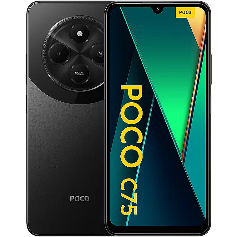 Available in green, black, and gold, the POCO C75 features a sleek flat-edge design and side-mounted fingerprint scanner for quick, secure access.