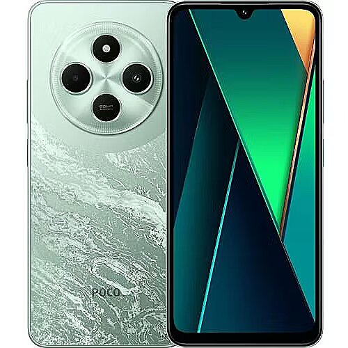 Available in green, black, and gold, the POCO C75 features a sleek flat-edge design and side-mounted fingerprint scanner for quick, secure access.