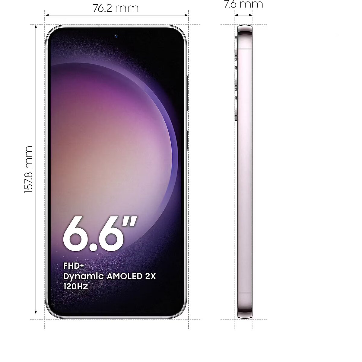 LongSummaryDescription - Samsung Galaxy S23+ SM-S916B. Display diagonal: 16.8 cm (6.6"), Display resolution: 2340 x 1080 pixels. Processor family: Snapdragon, Processor model: 8 Gen 2. RAM capacity: 8 GB, Internal storage capacity: 256 GB. Rear camera resolution (numeric): 50 MP, Rear camera type: Triple camera. SIM card capability: Dual SIM. Operating system installed: Android 13. Battery capacity: 4700 mAh. Product colour: Lavender. Weight: 195 g