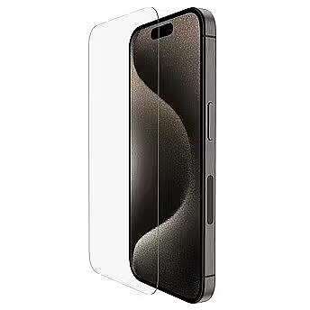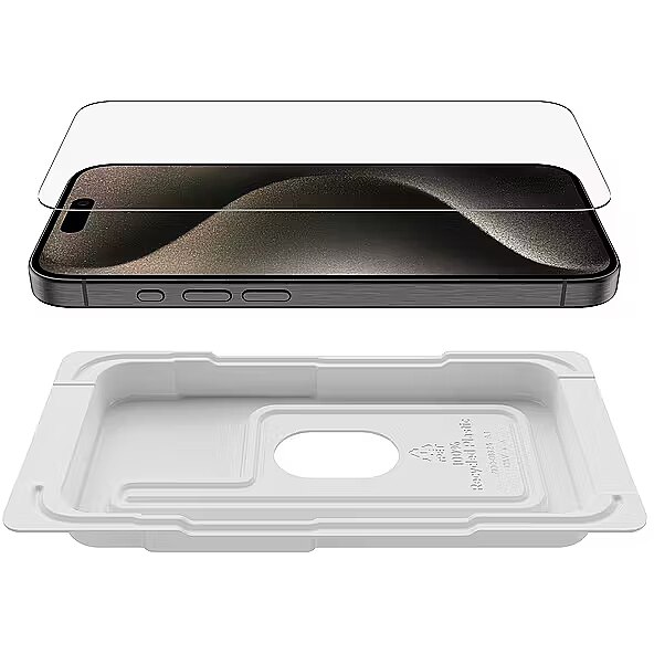 Description - ScreenForce UltraGlass 2 screen protector for iPhone 15 Pro Now up to 2.7 times stronger than tempered glass, but only 0.29 mm thick. UltraGlass 2 screen protectors are our strongest and most durable yet. They're designed to look and feel like an iPhone screen and protect against bumps, scratches, cracks, smudges, fingerprints and more. The glass contains an antibacterial coating that protects the product against discoloration and degradation. Our strongest and most durable screen protector ever Now up to 2.7 times stronger than tempered glass 24% improved drop resistance compared to previous Belkin UltraGlass screen protectors Thickness 0.29 mm Pencil hardness rating 9H Effective protection against scratches, cracks, smudges and fingerprints Native touchscreen experience and operation Antibacterial coating to prevent discoloration The set includes an Easy Align tray that allows for easy, precise application without air bubbles Limited Lifetime Warranty 100% recycled plastic packaging