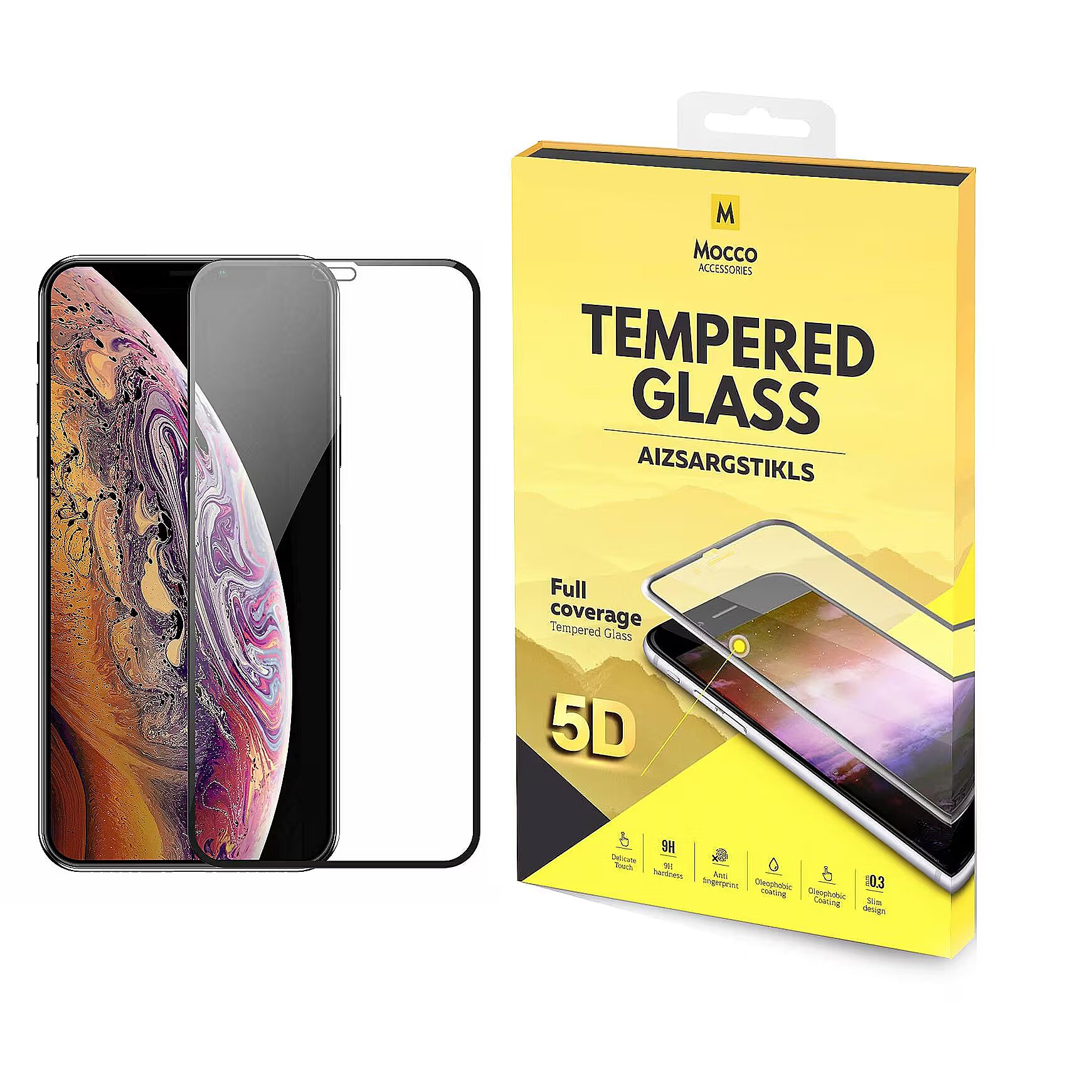 title_lv - Mocco Full Glue 5D Signature Edition Tempered Glass Aizsargstikls Pilnam Ekrānam Apple iPhone 11 Pro Melns
