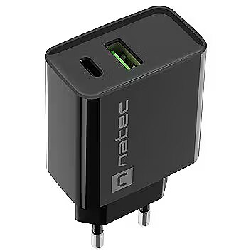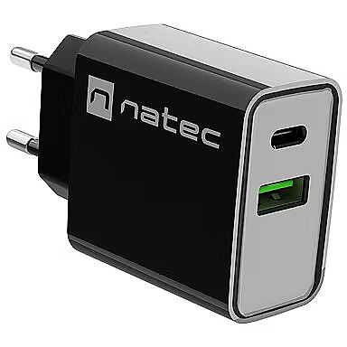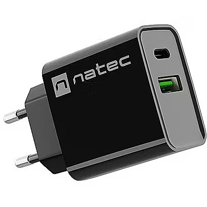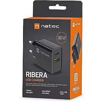 Description - Charging? With Natec Ribera, it's even simpler  Opt for the versatile Natec Ribera wall charger, with which you can effortlessly charge 2 devices simultaneously. Save time thanks to compatibility with fast charging standards, automatic adjustment of energy replenishment parameters, and safeguards that will protect your devices from malfunctions.  Main features  Fast charging for up to 2 devices simultaneously  Tired of slow energy replenishment and want your devices to charge much faster? With Natec Ribera, it's possible. We've equipped our charger with a USB-C port and a USB Type-A port compatible with fast charging standards such as Power Delivery 3.0, Quick Charge 3.0, Samsung AFC, and Huawei FCP. When combined with a maximum power of 20 W, this provides exceptional results and significant time savings compared to conventional solutions.  Intelligent communication with devices  Smart charging is an integral part of Natec Ribera. It automatically adjusts the optimal settings for the connected devices. All of this is done to ensure it doesn't have a negative impact on the condition of your electronics and to deliver energy safely, allowing you to enjoy your devices for even longer.  Additional features  Safety above all else  We understand how crucial safety is. Natec Ribera prioritises it in every aspect. Built-in protections will guard against excessive voltage and current (OVP and OCP), short circuit (SCP), and even overheating (OTP). Classic design At home, in the office, at a meeting no matter where you are, the classic design of Natec Ribera allows you to charge your device without drawing attention to yourself. Moreover, its compact dimensions (83 x 43 x 27 mm) and lightweight (56 g) enable you to take it with you on any journey.
