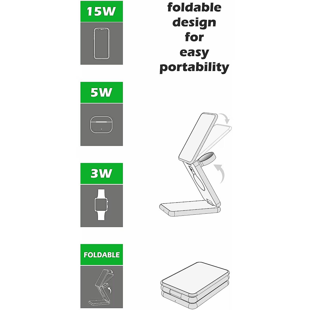 description_en - Are you looking for a reliable, very well-storable wireless charger? In that case, the Swissten 3-in-1 foldable wireless charger is the right choice for you. When its folded, it fits practically everywhere, so when you are traveling with a charger, you won't have to worry about chargers taking up a large part of your luggage. Another advantage is that you won't have to carry a lot of cables with you; only one will be enough. With the charger, you can easily charge three devices at once, with a total output of 23 watts.