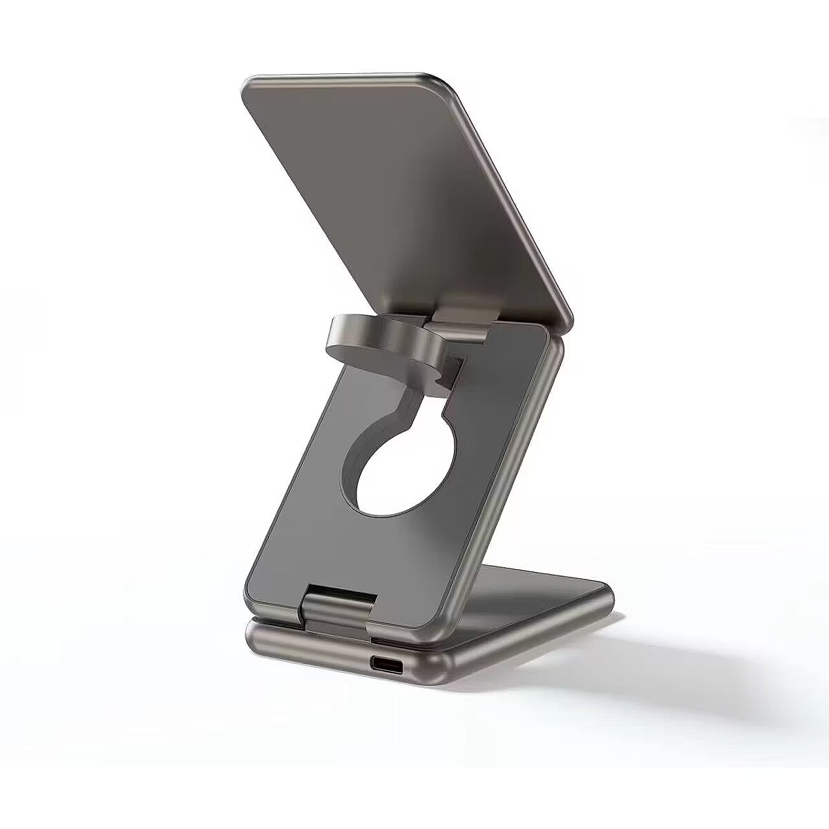 You can only charge the phone in the folded position. By tilting the charging part of the phone, you can charge both the phone and the watch at the same time. In the fully unfolded position, you can charge all of your devices at once.