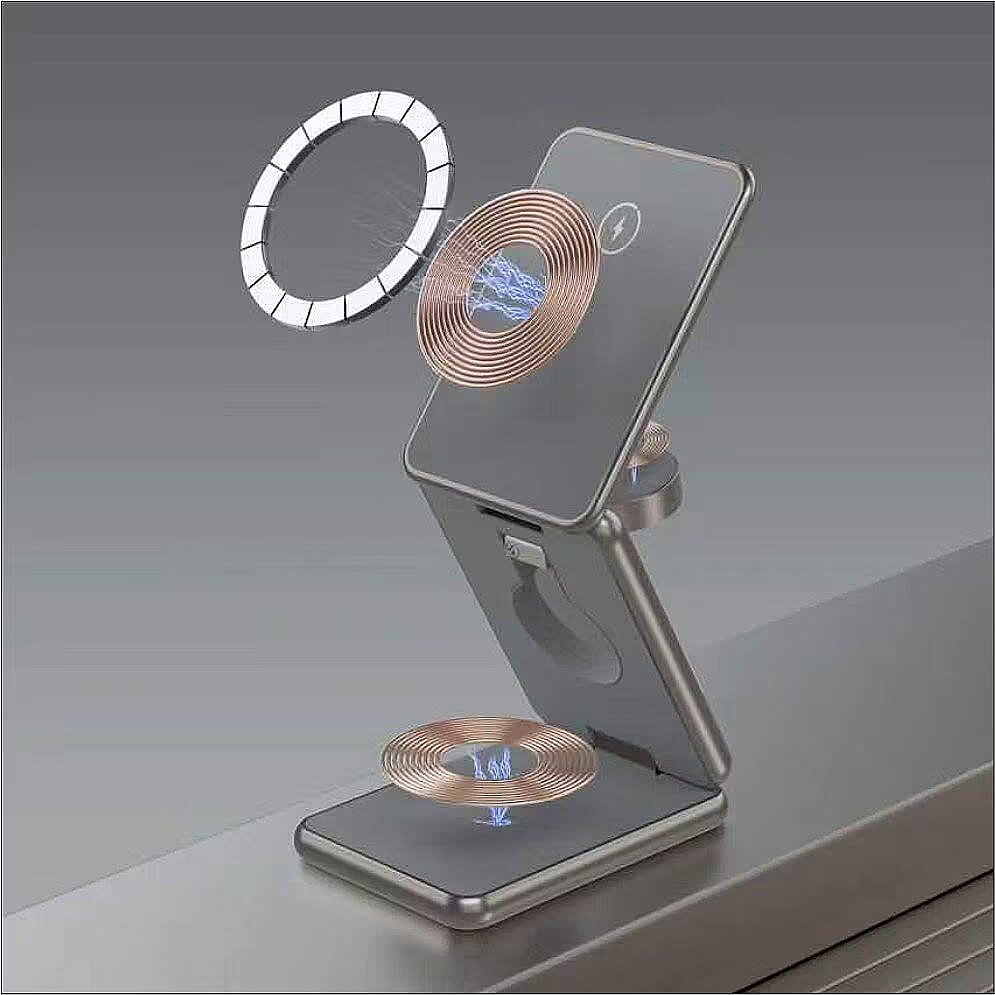 Благодаря функции зарядки до трех устройств одновременно у вас больше не возникнет проблем с нехваткой питания на ваших устройствах. Вы можете с комфортом заряжать свой телефон, часы и наушники благодаря поддержке беспроводной зарядки на зарядном устройстве.