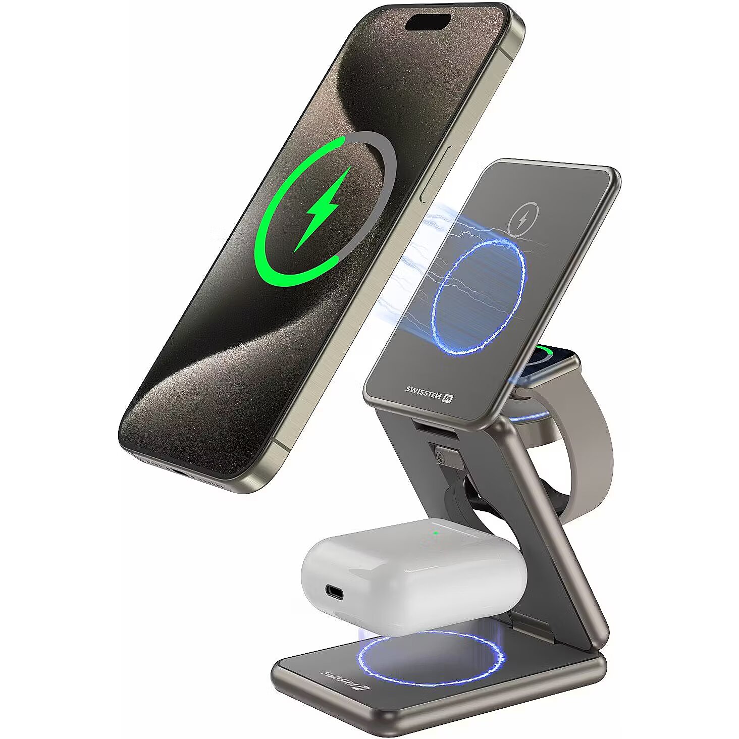 description_ru - Вы ищете надежное и легко хранимое беспроводное зарядное устройство? В этом случае складное беспроводное зарядное устройство Swissten 3-в-1 станет для вас правильным выбором. В сложенном виде он помещается практически везде, поэтому, путешествуя с зарядным устройством, вам не придется беспокоиться о том, что зарядные устройства займут большую часть вашего багажа. Еще одним преимуществом является то, что вам не придется носить с собой много кабелей; только одного будет достаточно. С помощью зарядного устройства вы легко сможете заряжать три устройства одновременно общей мощностью 23 Вт.