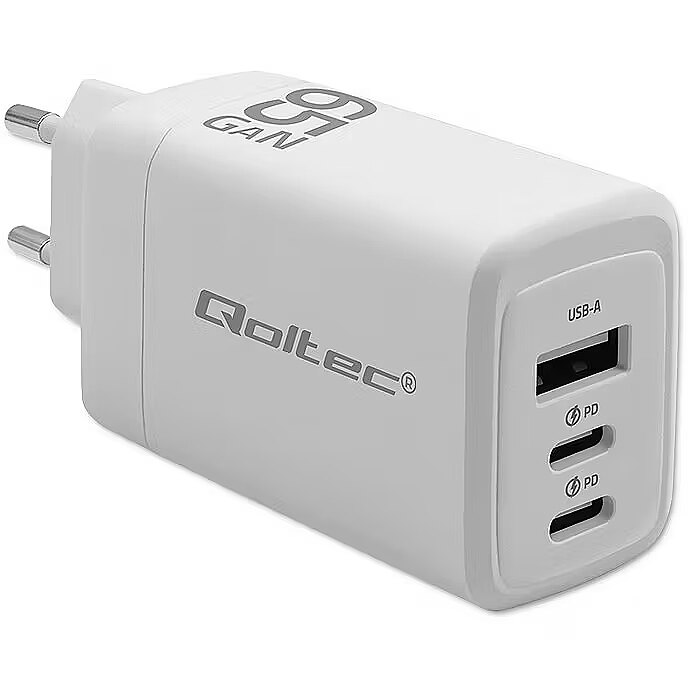Qoltec GaN 65W charger,5V 20V 3A 3.35A,2xUSB,2xUSB C