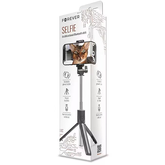 description_en - Forever FS-01 is a compact two-in-one ministative that can also be used as a manual. The tripod is integrated into a 360 ° rotating phone holder and the phone shutter is launched through the Bluetooth connection using a button on the remote control. A light and compact tripod is perfect for both home use and carrying. Two-in-one tripod and hand tripod 360° rotating phone holder Bluetooth connectivity & remote control Compact and lightweight design Minimum unfolded size: 31 cm Maximum unfolded size: 67 cm Suitable for devices up to 9 cm wide