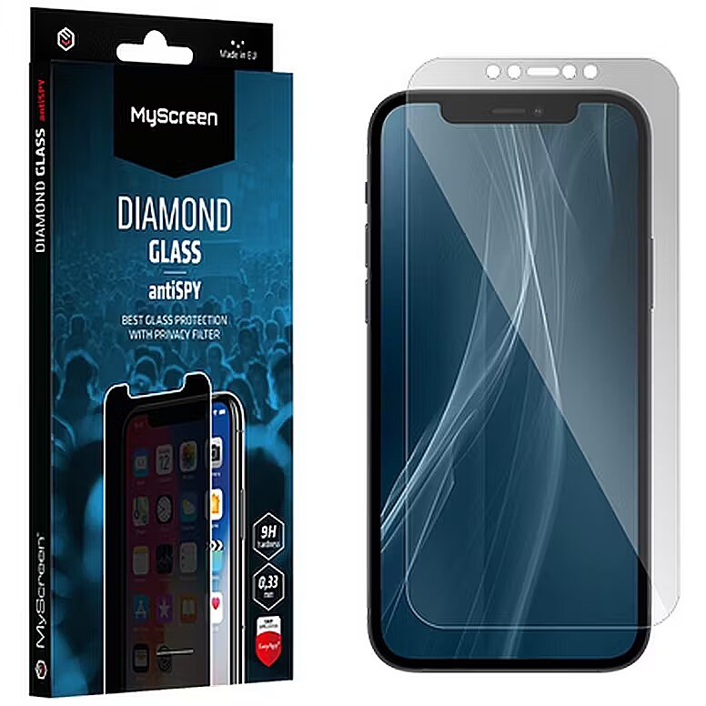 this is because on the Mohs scale, a hardness of 9 corresponds to the hardness of a diamond thats why we call it Diamond Glass.   System for easy installation EasyApp KIT TM  is an easy-to-use system that makes installation easier. Thanks to it, you can mount the glass on the screen efficiently and precisely.   The set includes 1 piece of DIAMOND GLASS ANTI SPY tempered glass wet cloth dry cloth EasyAppKITTM installation kit multilingual manual