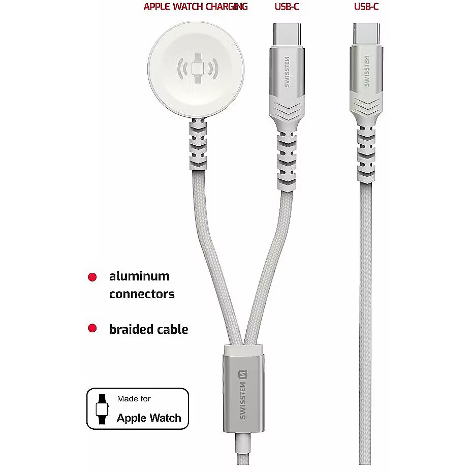 title_en - Swissten 2in1 Wireless Charger for Apple Watch and USB-C / USB-C / 1.2m