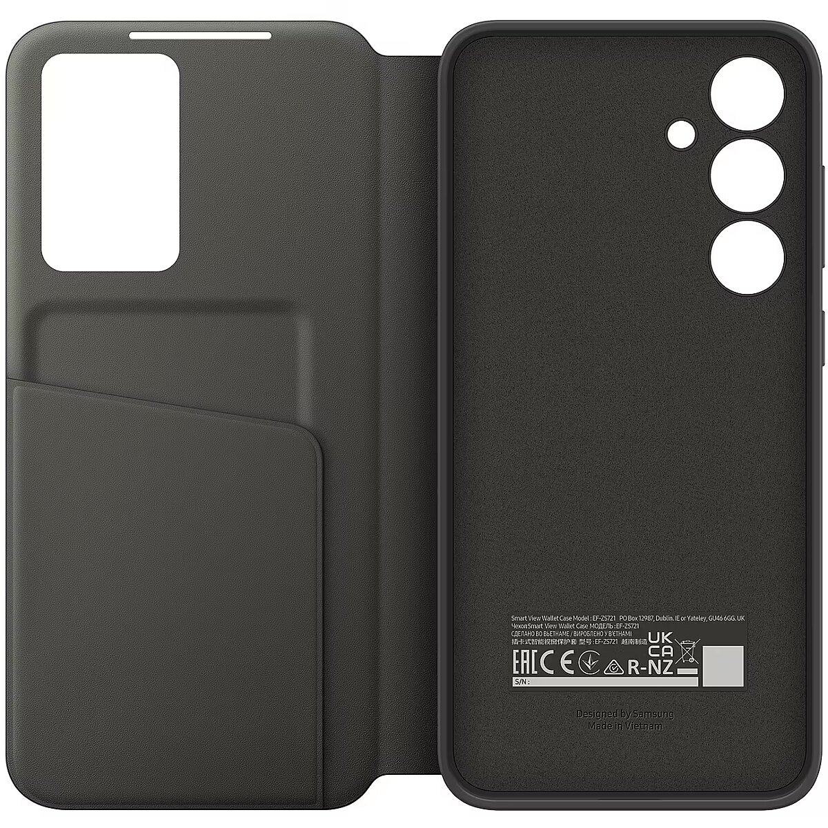 LongSummaryDescription - Samsung Smart View Wallet Case for S24 FE. Case type: Wallet case, Brand compatibility: Samsung, Compatibility: Galaxy S24 F, Maximum screen size: 17 cm (6.7"), Surface coloration: Monochromatic, Product colour: Black, Number of card pockets: 1
