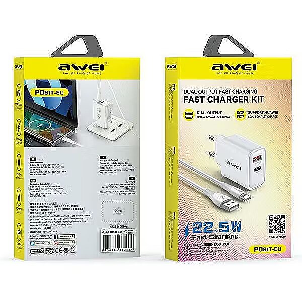 Awei Charger GaN 22,5W PD81T 22,5W + USB-C cable