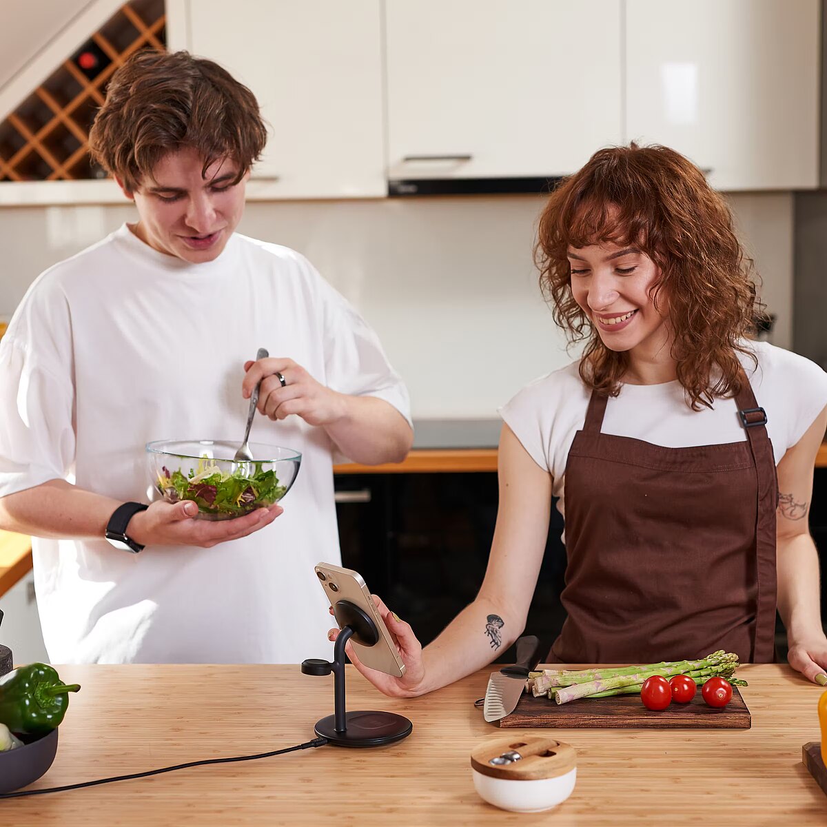 Description - Wireless magnetic charging lets you focus on everyday challenges. Thanks to MagSafe technology, you can comfortably use your device in any position, both vertically and horizontally. Fast and convenient device charging: Charge your smartphone with a maximum power of 15W. You can quickly charge up to three devices simultaneously on the inductive charger (according to our tests using a 33W PowerGaN charger). The 3-in-1 MagScape stand allows you to simultaneously charge your phone, wireless headphones, and Apple Watch thanks to its clever design and three dedicated charging zones. Magnetic case-friendly - the charger works with all cases equipped with Apple's MagSafe system and is also compatible with other phones, such as the Samsung Galaxy and Google Pixel.