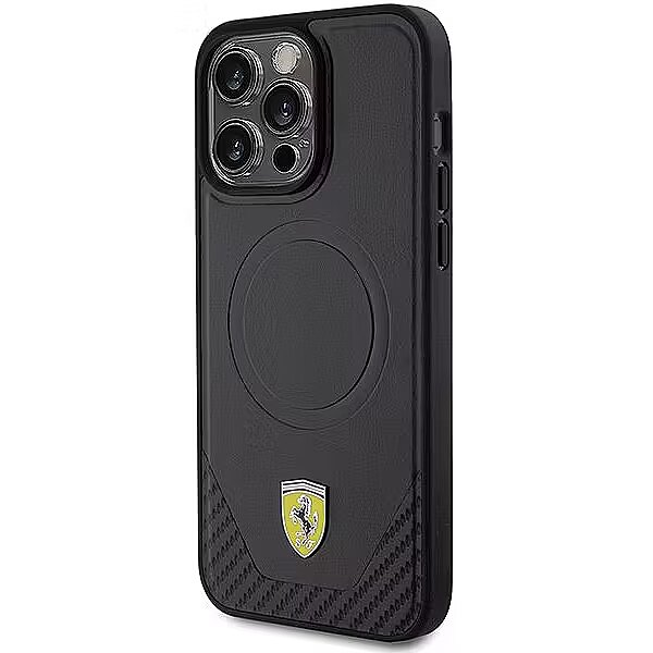 This product Ferrari Carbon Metal Logo MagSafe Back Case for Apple iPhone 15 Pro Max