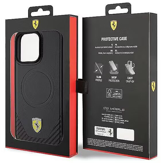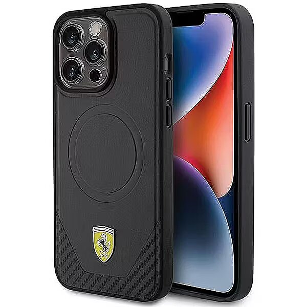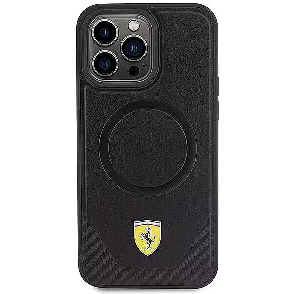 title_en - Ferrari Carbon Metal Logo MagSafe Back Case for Apple iPhone 15 Pro Max