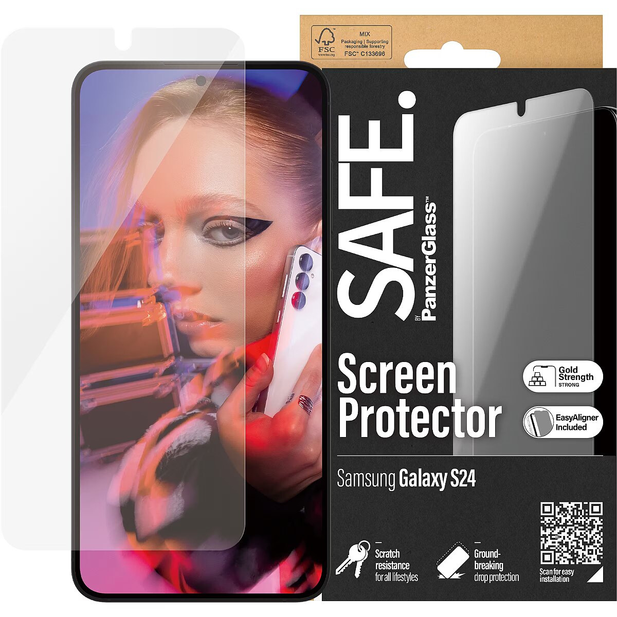 ShortSummaryDescription - PanzerGlass SAFE. by ® Screen Protector Samsung Galaxy S24 | Ultra-Wide Fit w. EasyAligner, Samsung, Samsung - Galaxy S24, Dry application, Scratch resistant, Shock resistant, Transparent, 1 pc(s)