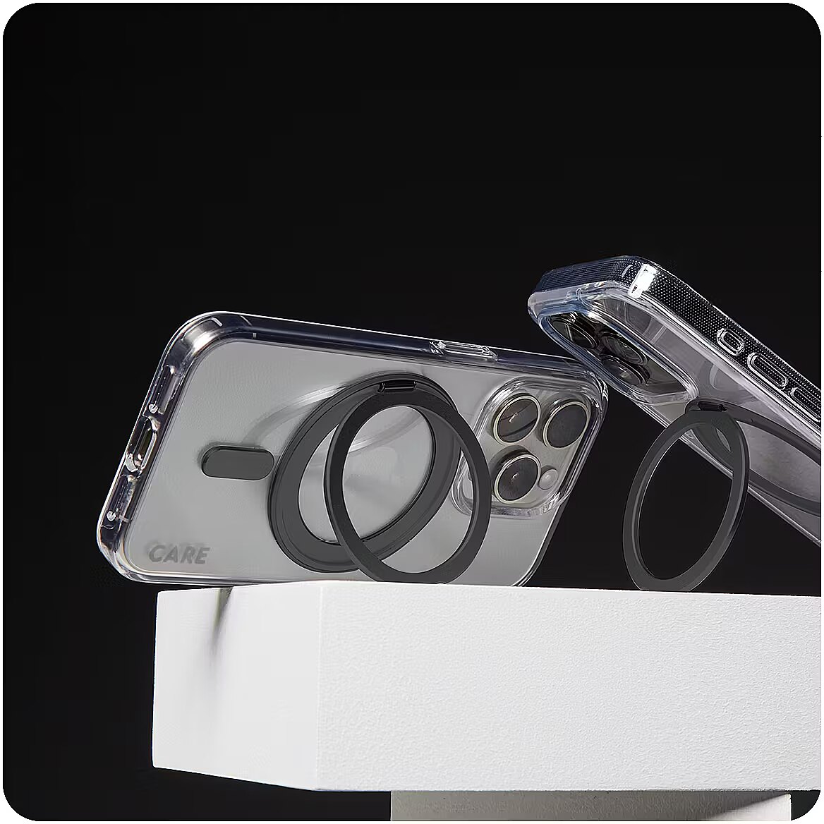 LongDesc - One of our most anticipated new products is finally available! Every angle and corner has been drop-tested at 4.8 meters. Made from recycled plastic, this case offers phenomenal protection, wireless charging, and MagSafe compatibility, and includes our 1 Year Anti-Yellowing guarantee – no questions asked. This slim, light-weight protective kickstand case offers everything you want is a phone case. It’s practical design features a versatile kickstand for hands-free viewing, both vertical and horizontal. Now you – or your kids – can FaceTime, stream series, watch movies, and do yoga with ease, any where, any time …  and hands free. It even includes enhanced camera protection to safeguard your selfies and photos.  DARE TO CARE CARE is a playful and protective international tech and lifestyle brand featuring a range of products  created using the highest quality materials and influenced by fashion, art, and music. We care about people and the world we live in. We care about sustainability and self-expression. And we care about tech and extending its lifetime. So protect your tech in style and show the world you CARE.