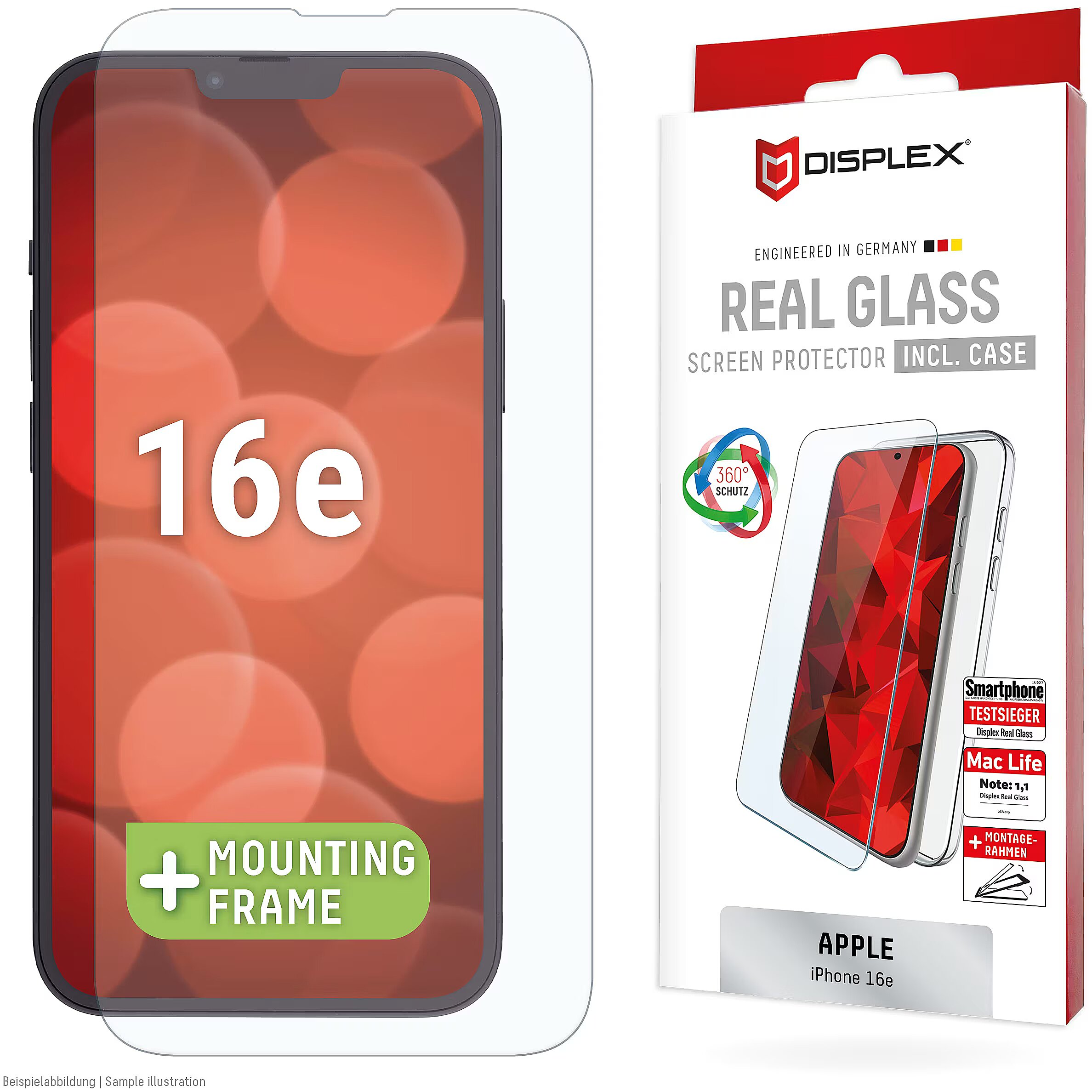 LongProductName - Screen Protector (10H) + Case for Apple iPhone 16e, Eco Mounting Frame, + Case, Tempered Glass, scratch resistant protective film