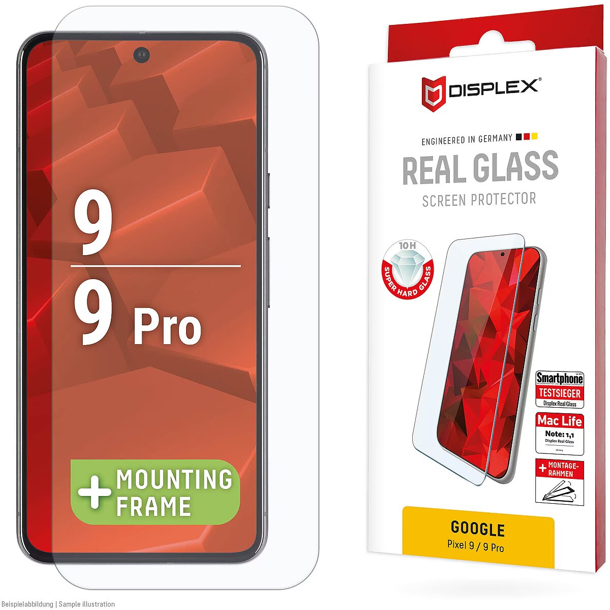 Displex Panzerglas 2D/ Clear (10H) für Google Pixel 9/9 Pro Eco-Montagerahmen, Tempered Glas, kratzer-resistente Schutzfolie, hüllenfreundlich