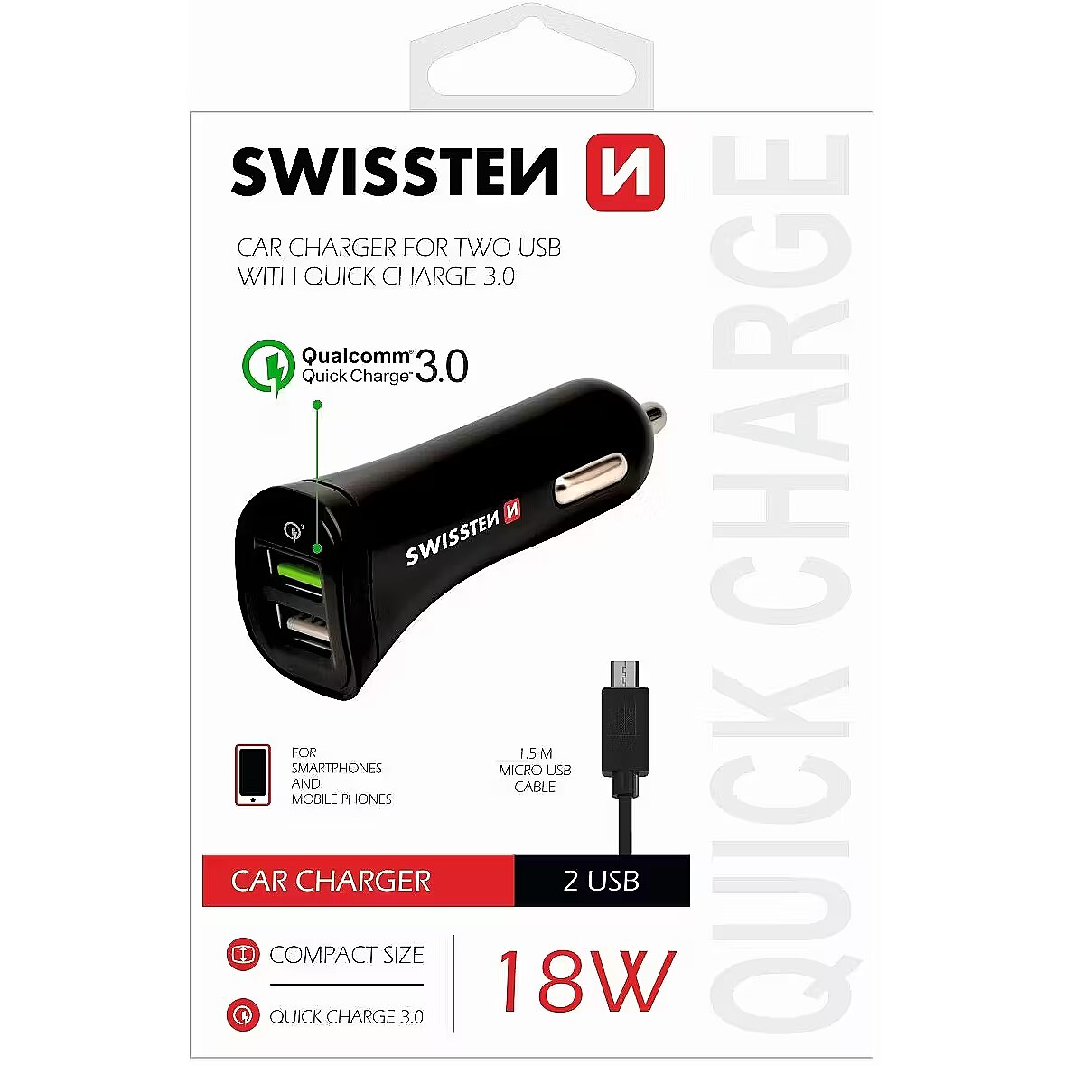 title_en - Swissten Quick Charge 3.0 Car charger 12 / 24V / 2.4A / 18W + Micro USB Cable 1.5m