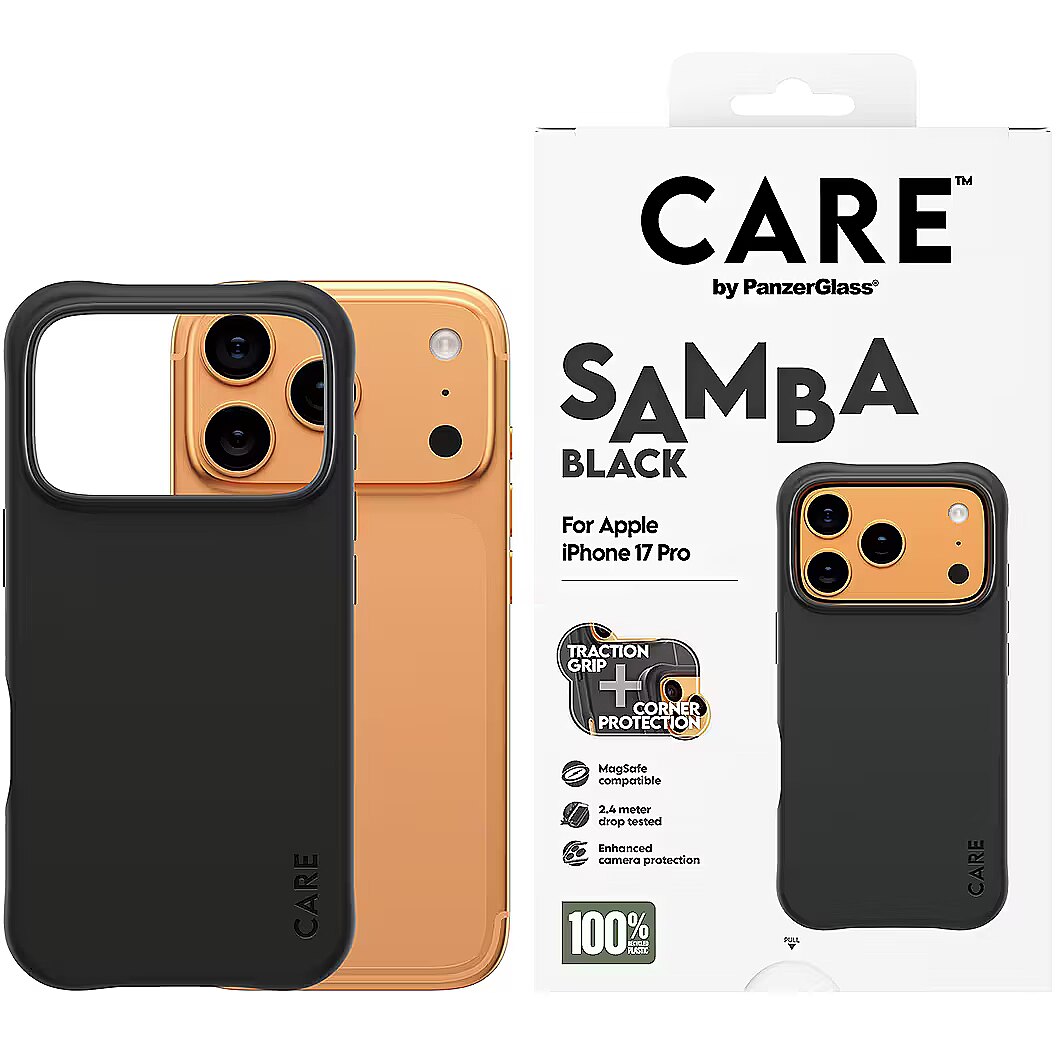 LongSummaryDescription - PanzerGlass CARE™ by ® Samba Case Black w. MagSafe iPhone 17 Pro. Case type: Cover, Brand compatibility: Apple, Compatibility: Apple - iPhone 17 Pro, Surface coloration: Monochromatic, Product colour: Black