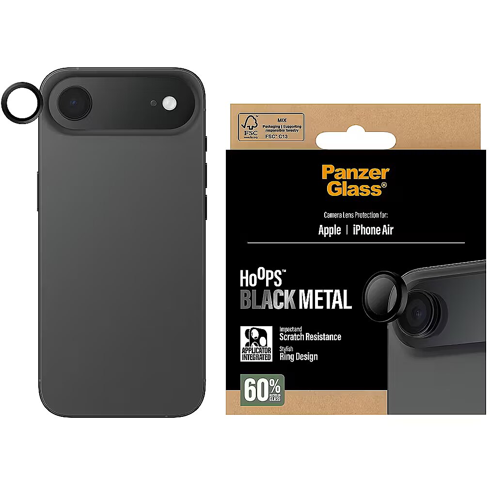 ShortSummaryDescription - PanzerGlass ® Hoops® Camera Lens Protector Black iPhone Air, Apple, Apple - iPhone Air, Dry application, Scratch resistant, Shock resistant, Black, 1 pc(s)