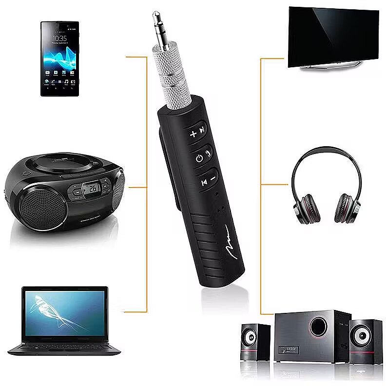 The MT3588 receiver is designed to receive sound from smartphones and other devices that support Bluetooth technology. Just connect your device to AUX and pair with your smartphone or other wireless sound source. The buttons on the case make it easy to answer calls, adjust volume and control media. Turn your usual headphones with a 3.5mm Jack into advanced Bluetooth wireless headphones. No AUX socket on your latest smartphone is no longer a problem! The MT3588 receiver, when connected to the car audio system of your car, allows you to be safe phone calls during the trip. Connect the MT3588 wireless receiver to your home Hi-Fi system and add the Bluetooth function to it.