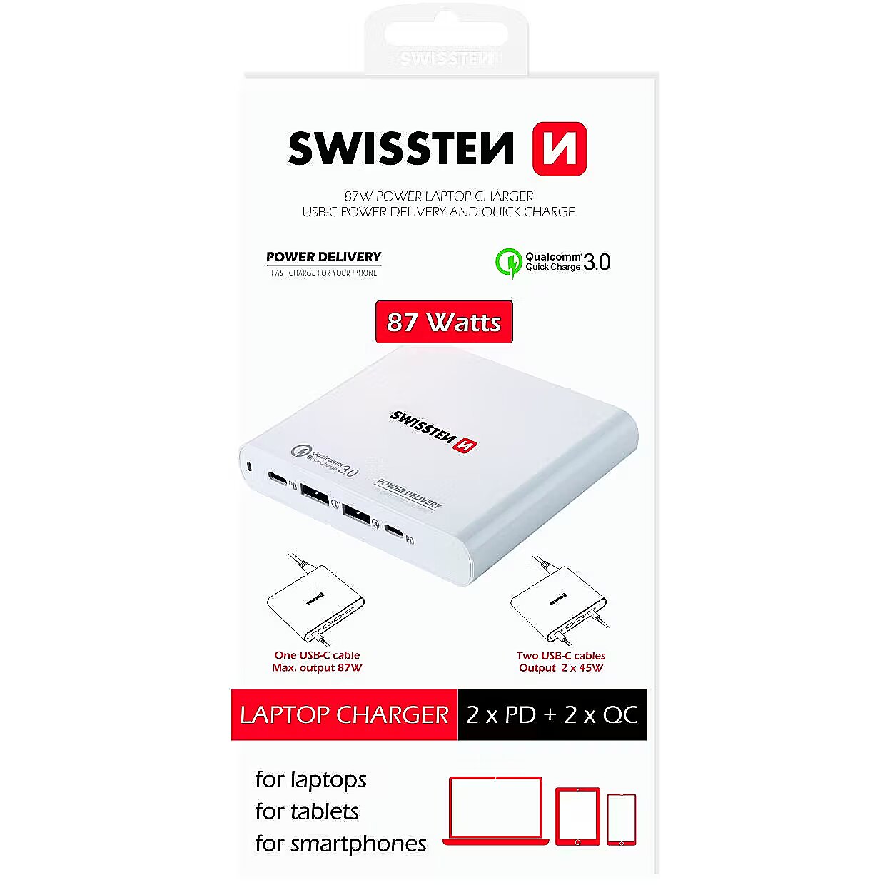 title_en - Swissten Travel Charger Notebooks and MacBook / 87W / PD3.0 / QC3.0 / PPS