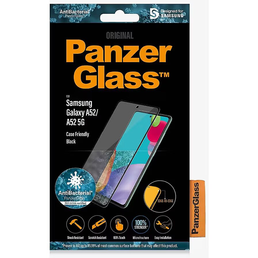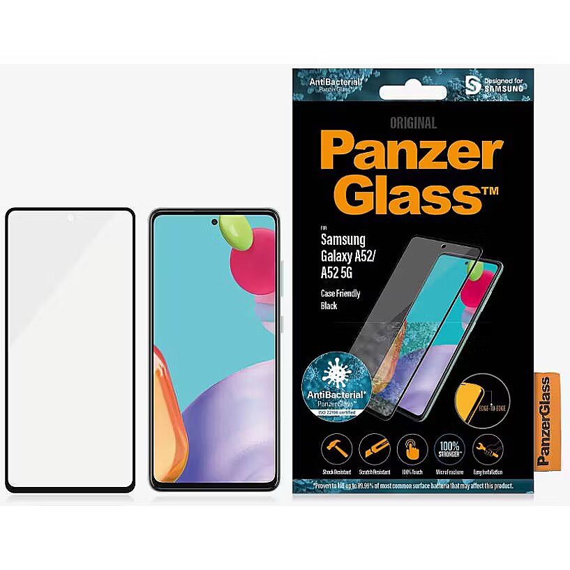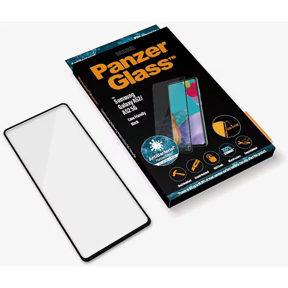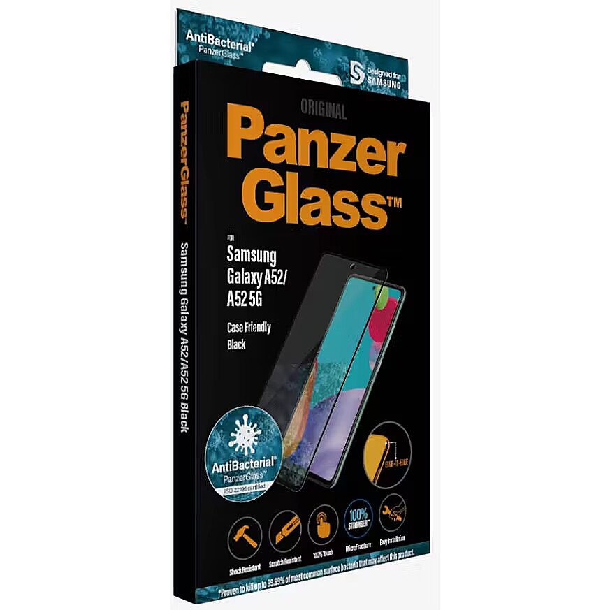 ShortSummaryDescription - PanzerGlass ® Screen Protector Samsung Galaxy A52 | A52 5G | A52s 5G | A53 5G, Samsung, Samsung - Galaxy A52, Samsung - Galaxy A52 5G, Dry application, Scratch resistant, Shock resistant, Anti-bacterial, Transparent, 1 pc(s)