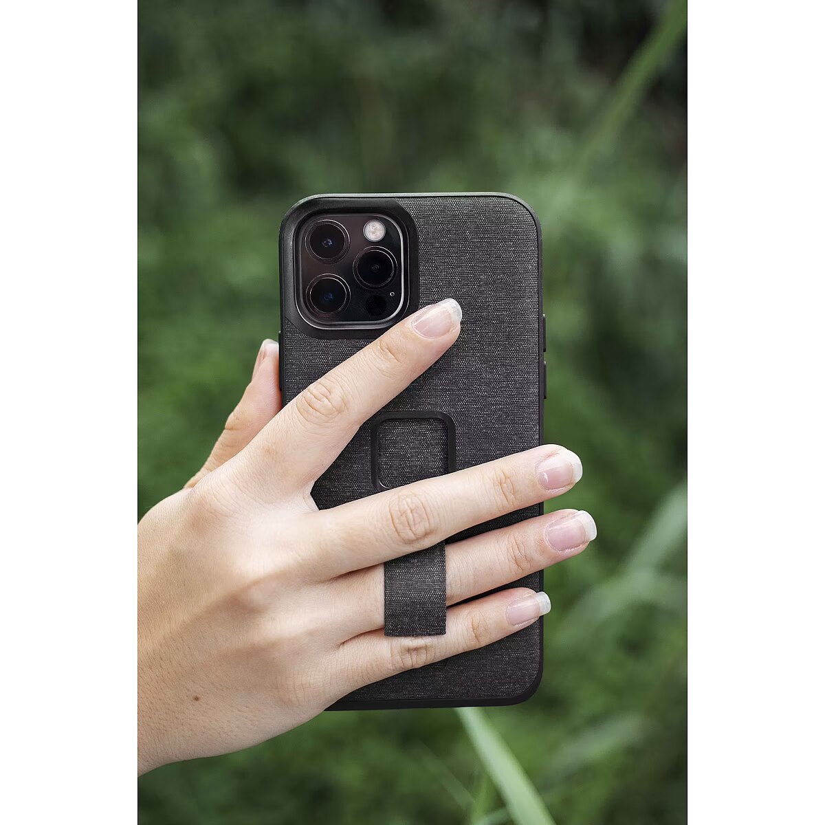 A phone case with the perfect balance of slimness, smart aesthetics, and protection, plus it brilliantly connects to the entire Peak Design Mobile Ecosystem (and MagSafe accessories, too). It's like a tuxedo for your phone—a tuxedo with a slim 2.4 mm profile and protective rubberized bumper, all wrapped in beautiful nylon canvas shell. But what truly sets the Everyday Case apart is the brilliant magnetic/mechanical lock that's built right into it. We call this mounting technology SlimLink™, and it's so fast and secure that it borders on magic. With this case on your phone, you can instantly connect to all Peak Design Mobile mounts, chargers, and accessories. It even works with Apple MagSafe chargers and accessories, too. The Everyday Loop Case comes with a radical flat-stowing, quick-deploying finger loop for added grip and security. Security, slimness, grip, and beauty—get ready to have everything you want in a phone case, with zero compromise. Unlock the peak design ecosystem Connects to all Peak Design Mobile mounts & accessories Built-in magnetic locking technology (called SlimLink™) is ultra secure and feels like magic Works with MagSafe Compatible with MagSafe accessories & chargers Slim & protective Super-slim 2.4mm profile Rubberized full-surround shock-absorbing bumper Protective lip around screen and camera lenses Rugged 2m (6ft) drop protection Better materials = better case Nylon canvas fabric shell is weatherproof, 100% recycled, and Bluesign-approved Ultralight polycarbonate body Works with peak design straps 2 mounting points for Peak Design Anchors let you tether/carry your phone with any Peak Design strap Bye bye, Pop Sockets Loop Case models feature deployable finger loop for easy grip Loop deploys with one finger for instant security Loop is magnetically held flush when not in use Convenient security for exercise, photography, viewing, and communicating